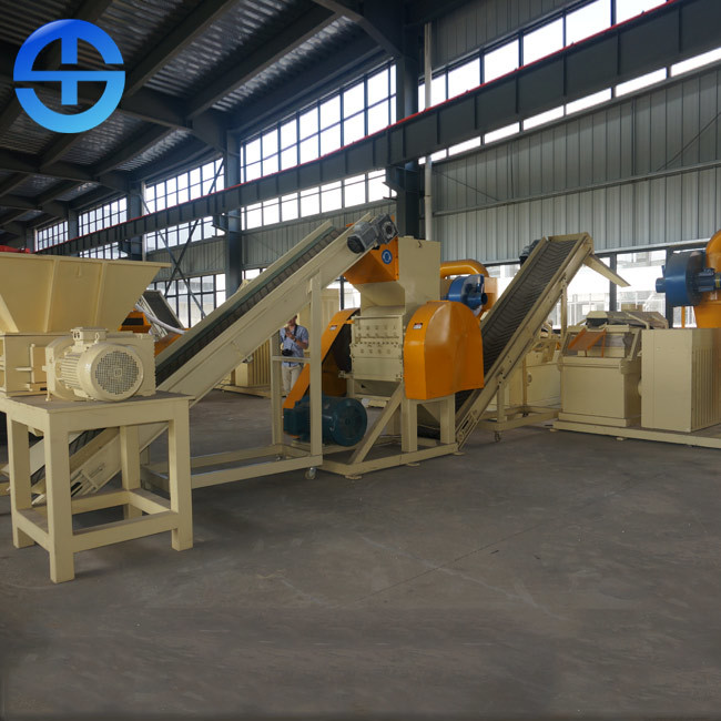 Μέσω του πρώτου θραυστήρα, ο εξοπλισμός σπάζει το μαζικό υλικό στο μέγεθος 510cm. Μετά από να μεταβιβάσει στο θραυστήρα για τη δευτεροβάθμια συντριβή, το συντριμμένο υλικό είναι 1015mm σε μέγεθος. Μέσω της διαλογής του μαγνητικού διαχωριστή, το μαγνητικό υλικό όπως ο σίδηρος είναι χωρισμένο από το συντριμμένο υλικό. Μετά από το χωρισμό του χαλκού και του αλουμινίου από το διαχωριστή δόνησης, ο χαλκός, ο σίδηρος, η σκόνη αλουμινίου και άλλες ουσίες είναι τελικά χωρισμένοι.